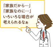 本人と家族の関係は、家族毎に千差万別です。いちがいに「家族だから」といって済むわけではないのです。ですから、個別ケースごとにその関係を理解する必要がありますが、その際に、家族内に一般にある関係の特徴を理解しておくとよいでしょう。